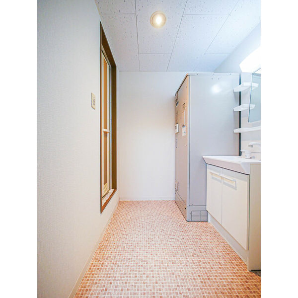 - 風呂(ユニットバス)、トイレ(水洗)、洗面台(独立)、洗髪洗面化粧台、バス・トイレ別、洗濯機置場(室内)
