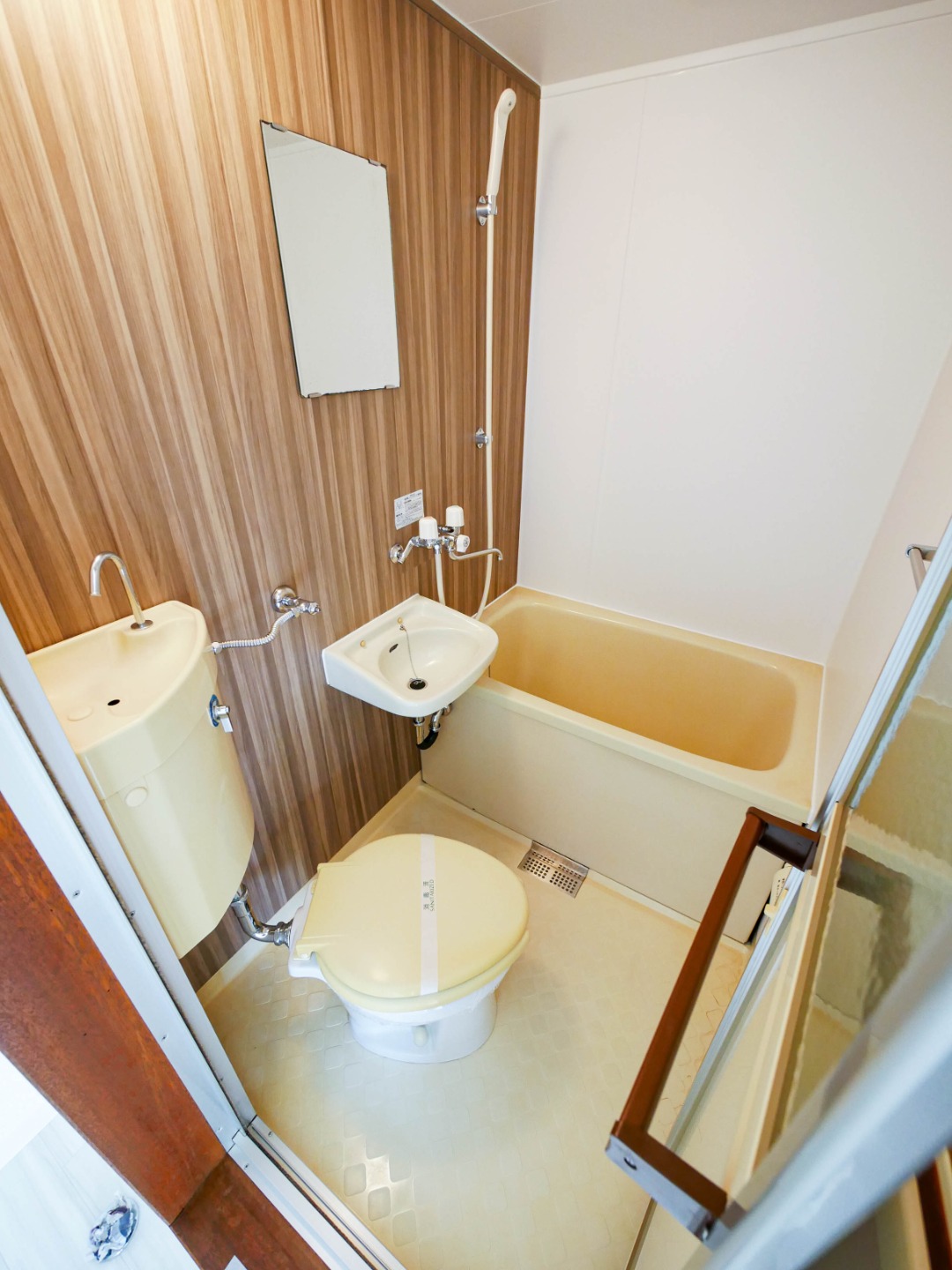 - 風呂(ユニットバス)、トイレ(水洗)、洗面台(浴室内)、洗濯機置場(室内)
