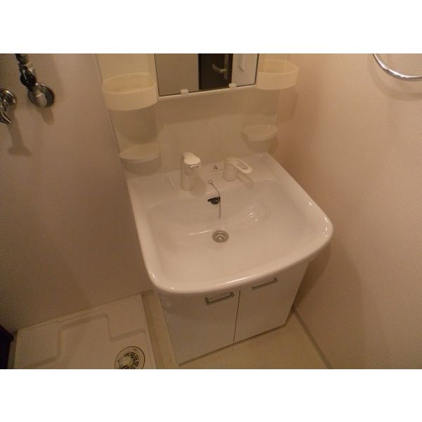 - 風呂(ユニットバス)、トイレ(水洗)、洗面台(独立)、暖房便座、シャワートイレ、洗髪洗面化粧台、バス・トイレ別、洗濯機置場(室内)