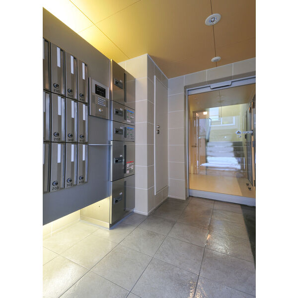 - BS、CS、光ファイバー、TVアンテナ、オートロック、宅配ボックス、管理人、防犯カメラ、専用ゴミ置き場、駐輪場、ロードヒーティング