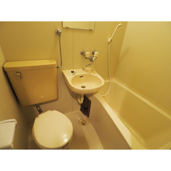 - 風呂(ユニットバス)、トイレ(水洗)、洗面台、バス・トイレ別、洗濯機置場(室内)