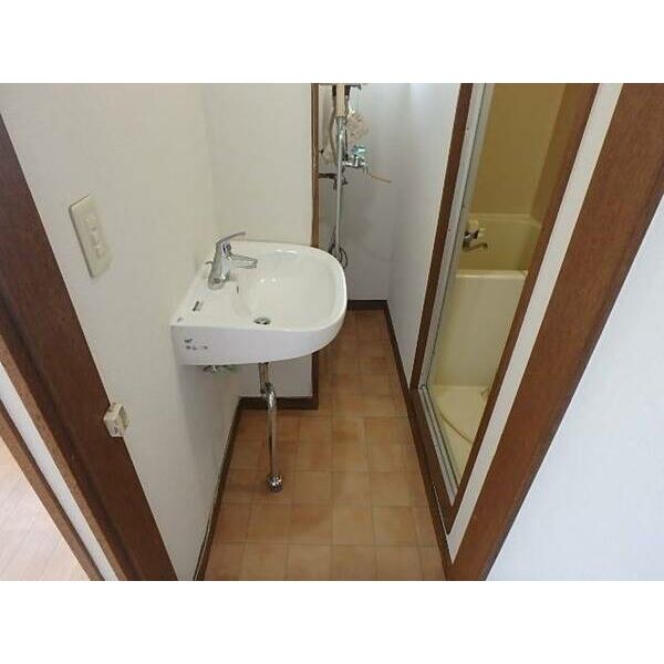 - トイレ(水洗)、洗面台(独立)、バス・トイレ別、洗濯機置場(室内)、風呂(ユニットバス)