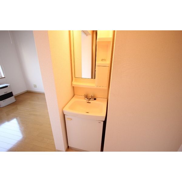 - 風呂(ユニットバス)、トイレ(水洗)、洗面台(独立)、バス・トイレ別、洗濯機置場(室内)