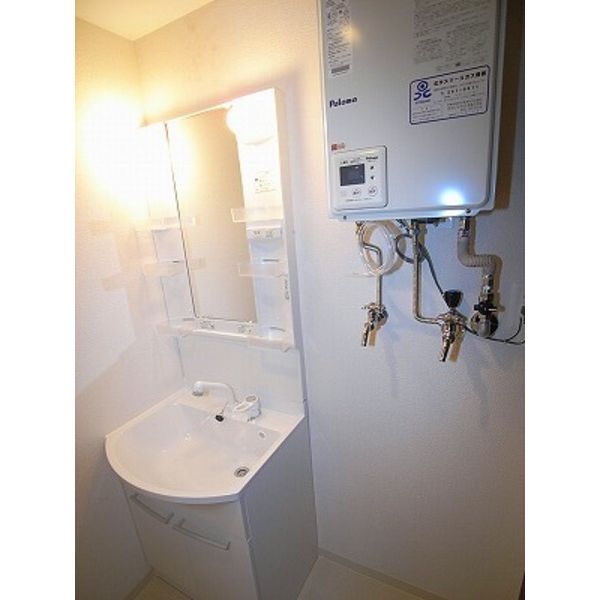 - 風呂(ユニットバス)、トイレ(水洗)、洗面台(独立)、浴室乾燥機、暖房便座、シャワートイレ、洗髪洗面化粧台、バス・トイレ別、洗濯機置場(室内)