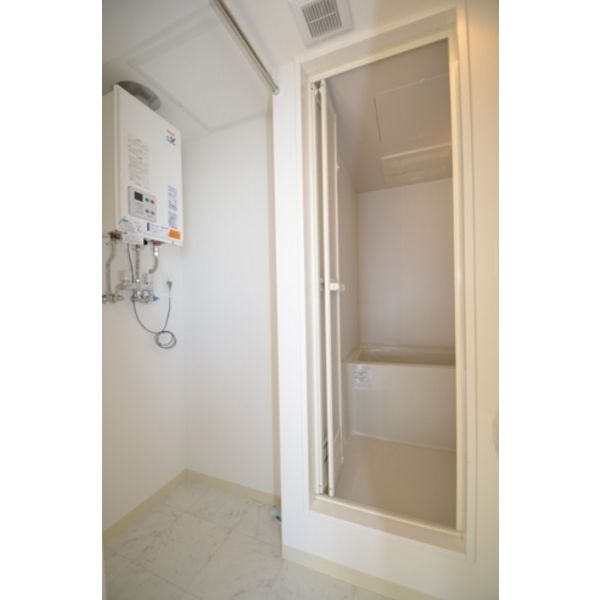 - 風呂(ユニットバス)、トイレ(水洗)、洗面台(独立)、浴室乾燥機、バス・トイレ別、洗濯機置場(室内)