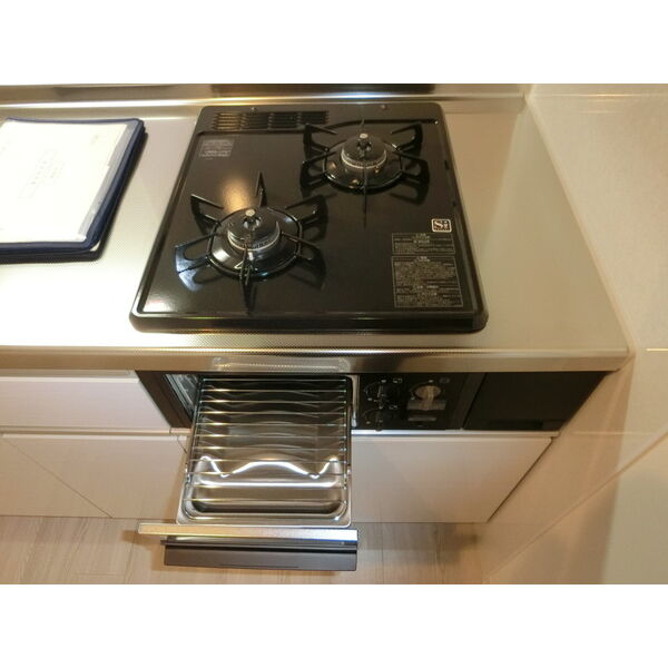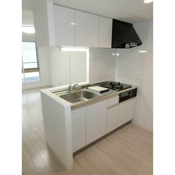 - 給湯器(ガス)、ガステーブル(二個口)、システムキッチン、対面式キッチン