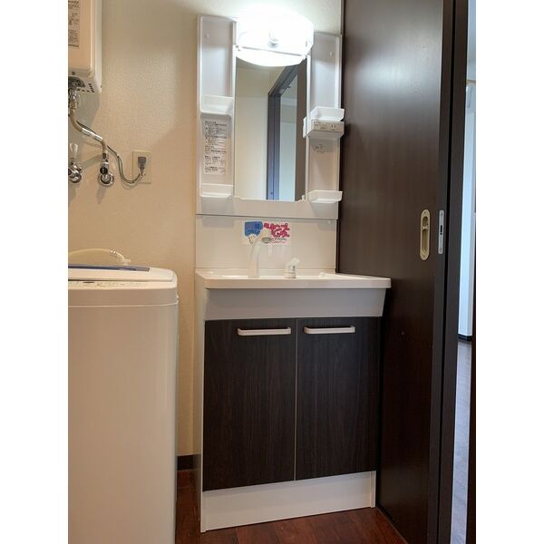 - 風呂(ユニットバス)、トイレ(水洗)、洗面台(独立)、浴室乾燥機、暖房便座、シャワートイレ、洗髪洗面化粧台、バス・トイレ別、洗濯機置場(室内)