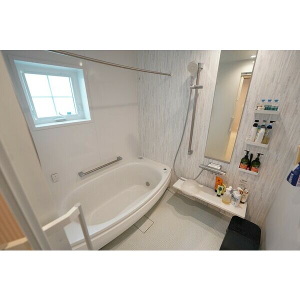 - 風呂(ユニットバス)、トイレ(水洗)、洗面台(独立)、暖房便座、シャワートイレ、追い焚き、洗髪洗面化粧台、バス・トイレ別、洗濯機置場(室内)、トイレ2箇所
