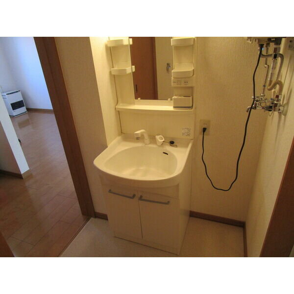 - 風呂(ユニットバス)、トイレ(水洗)、洗面台(独立)、暖房便座、洗髪洗面化粧台、バス・トイレ別、洗濯機置場(室内)