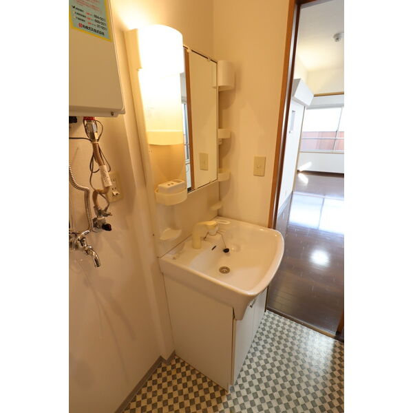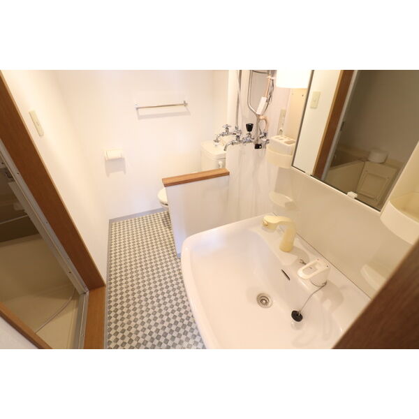 - 風呂(ユニットバス)、トイレ(水洗)、洗面台(独立)、洗髪洗面化粧台、バス・トイレ別、洗濯機置場(室内)