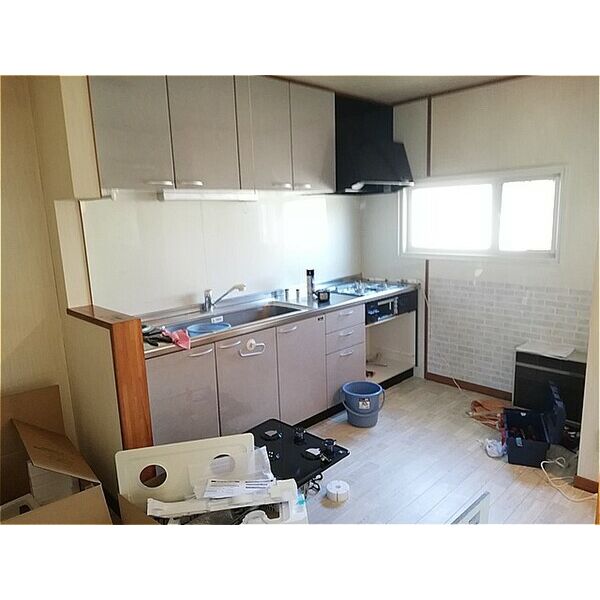 - 給湯器(灯油)、ガステーブル(二個口)、システムキッチン