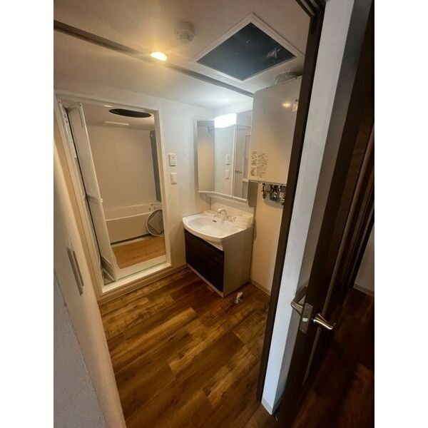 - 風呂(ユニットバス)、トイレ(水洗)、洗面台(独立)、暖房便座、追い焚き、洗髪洗面化粧台、バス・トイレ別、洗濯機置場(室内)