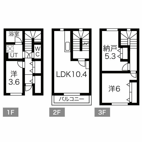 LDK:10.4帖 洋1:3.6帖 洋2:6.0帖 S:5.3帖 - 階数