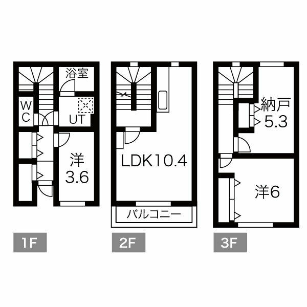 LDK:10.4帖 洋1:3.6帖 洋2:6.0帖 S:5.3帖 - 階数