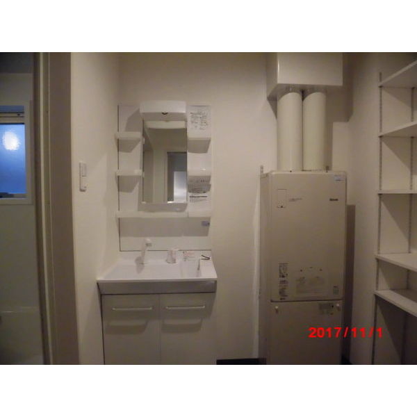 - 風呂(ユニットバス)、トイレ(水洗)、洗面台(独立)、シャワートイレ、追い焚き、洗髪洗面化粧台、バス・トイレ別、洗濯機置場(室内)