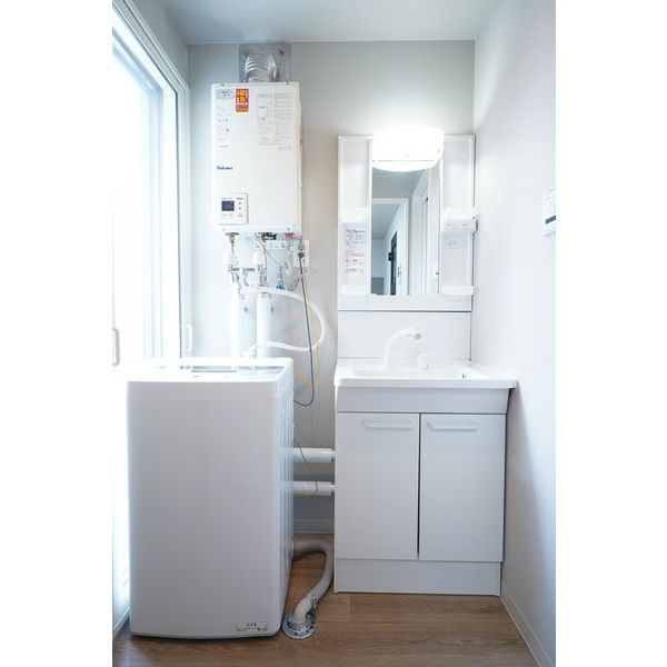 - 風呂、トイレ(水洗)、洗面台(独立)、浴室乾燥機、暖房便座、シャワートイレ、洗髪洗面化粧台、洗濯機置場(室内)