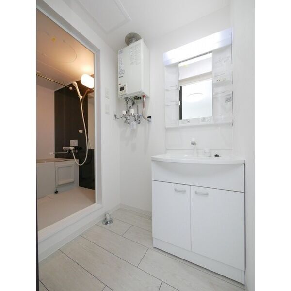 - 風呂(ユニットバス)、トイレ(水洗)、洗面台(独立)、暖房便座、シャワートイレ、洗髪洗面化粧台、バス・トイレ別、洗濯機置場(室内)