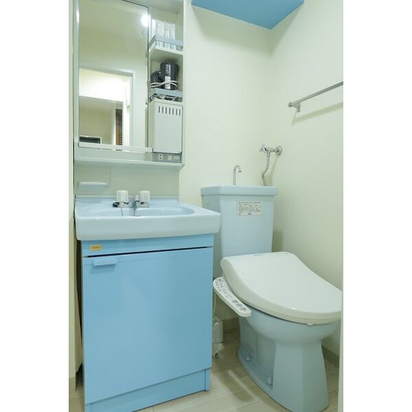 - 風呂(ユニットバス)、トイレ(水洗)、洗面台(独立)、シャワートイレ、バス・トイレ別、洗濯機置場(室内)