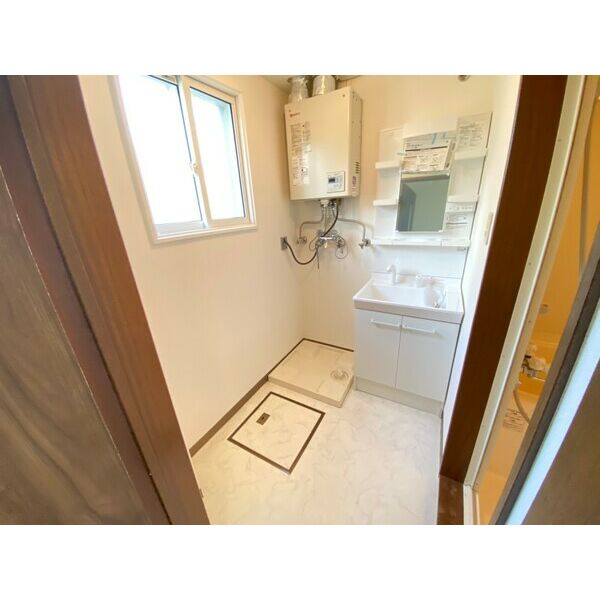 - トイレ(水洗)、バス・トイレ別、洗濯機置場(室内)、風呂、洗面台