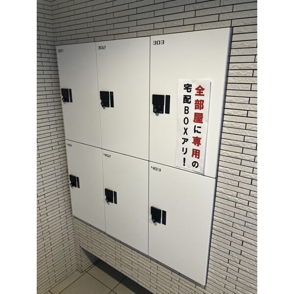 - BS、光ファイバー、オートロック、防犯カメラ、駐輪場、TVアンテナ、メールボックス、CS、宅配ボックス、専用ゴミ置き場