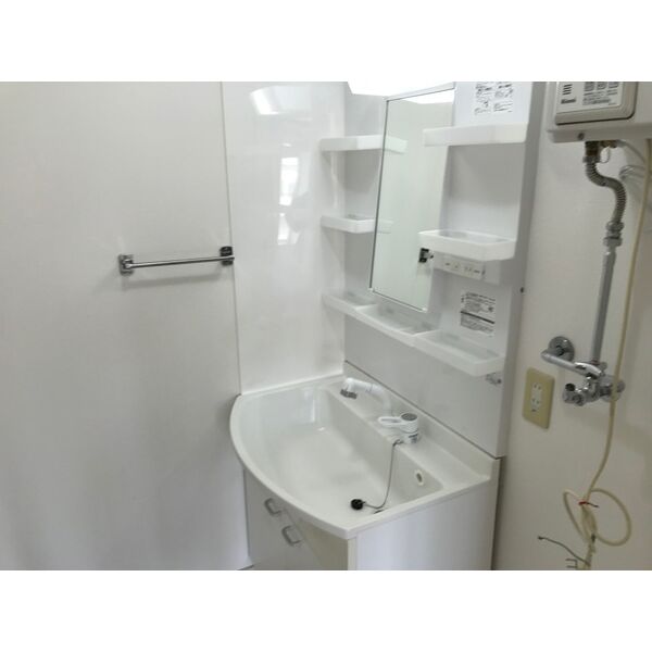 - 風呂(ユニットバス)、トイレ(水洗)、洗面台(独立)、洗髪洗面化粧台、バス・トイレ別、洗濯機置場(室内)
