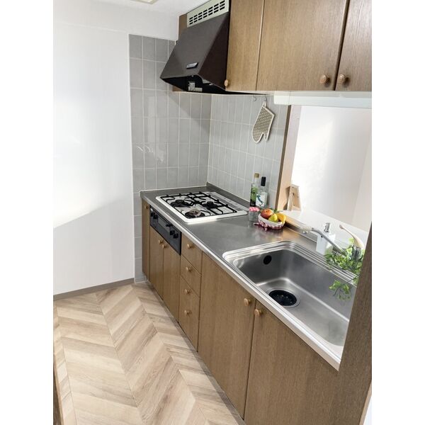 - 給湯器(都市ガス)、ガステーブル(二個口)、システムキッチン