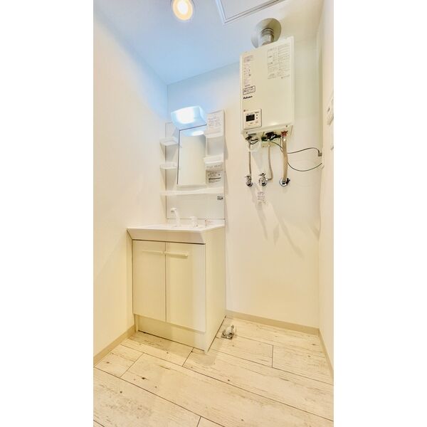 - 風呂(ユニットバス)、トイレ(水洗)、洗面台(独立)、浴室乾燥機、シャワートイレ、バス・トイレ別、洗濯機置場(室内)