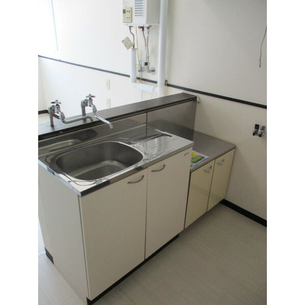 - 給湯器(プロパンガス)、ガステーブル(二個口)、システムキッチン、カウンターキッチン