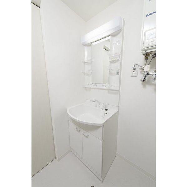 - 風呂(ユニットバス)、トイレ(水洗)、洗面台(独立)、暖房便座、シャワートイレ、洗髪洗面化粧台、バス・トイレ別、洗濯機置場(室内)