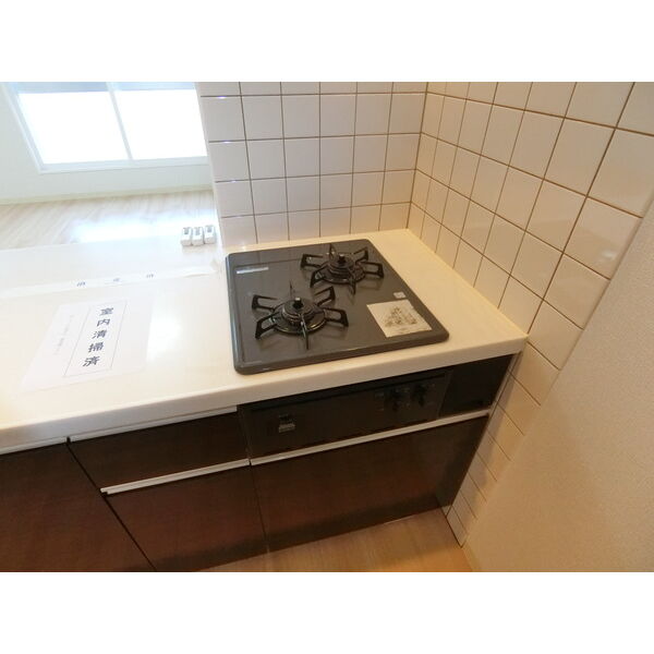- 給湯器(プロパンガス)、ガステーブル(二個口)、システムキッチン、対面式キッチン