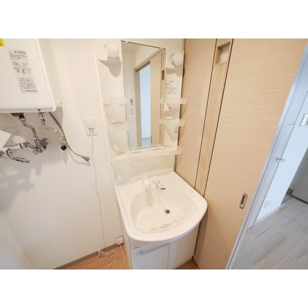 - 風呂(ユニットバス)、トイレ(水洗)、洗面台(独立)、洗髪洗面化粧台、バス・トイレ別、洗濯機置場(室内)