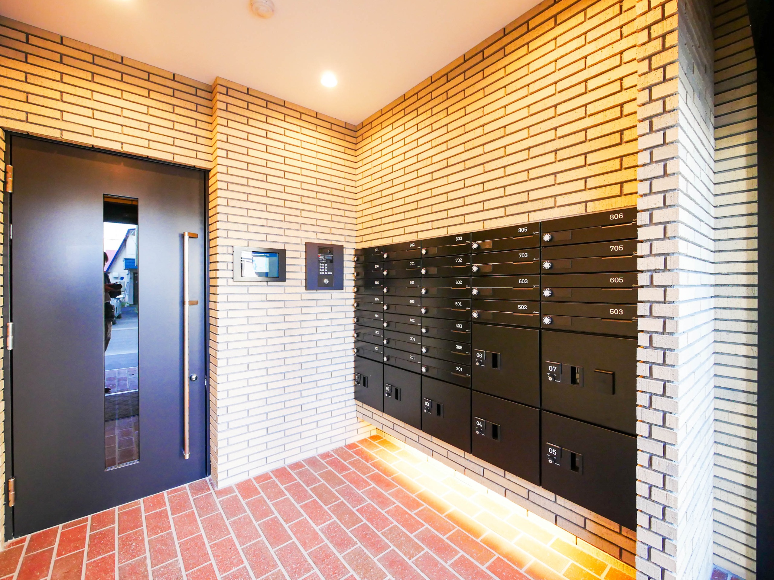 - オートロック、宅配ボックス、防犯カメラ、専用ゴミ置き場、エレベーター、駐輪場、ロードヒーティング、光ファイバー、TVアンテナ、メールボックス