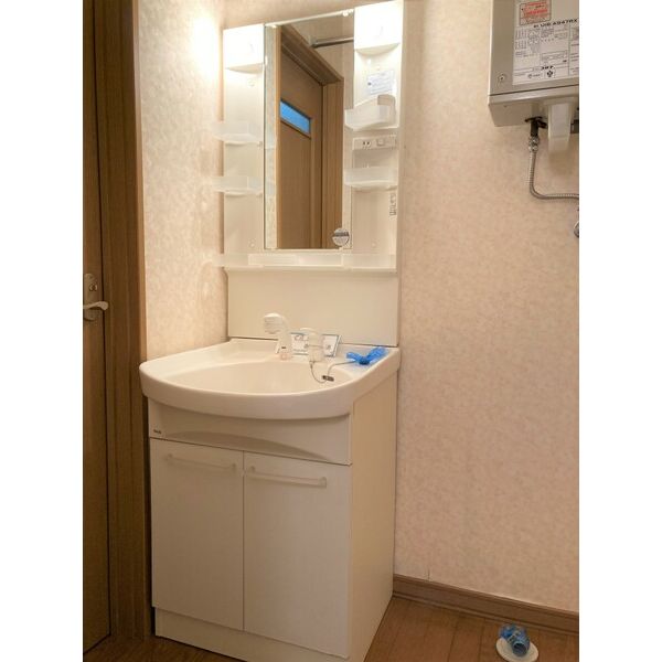 - 風呂(ユニットバス)、トイレ(水洗)、洗面台(独立)、洗髪洗面化粧台、バス・トイレ別、洗濯機置場(室内)