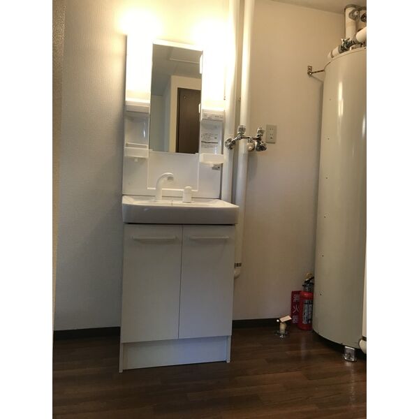 - 風呂(ユニットバス)、トイレ(水洗)、洗髪洗面化粧台、洗濯機置場(室内)、洗面台(独立)