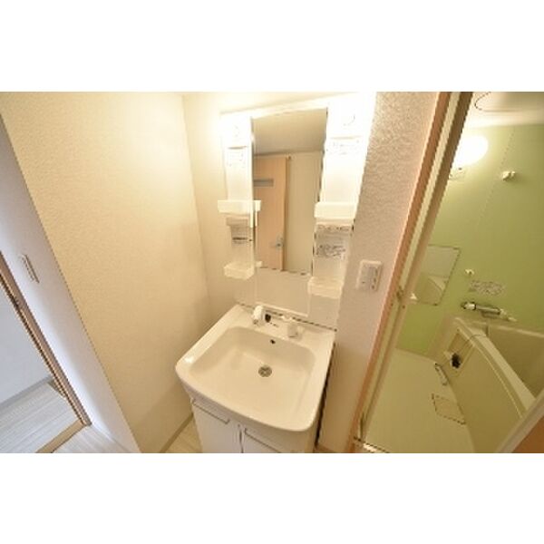 - 風呂(ユニットバス)、トイレ(水洗)、洗髪洗面化粧台、バス・トイレ別、洗濯機置場(室内)、洗面台(独立)