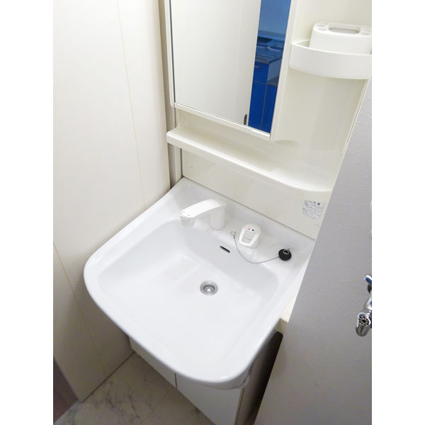 - 風呂(ユニットバス)、トイレ(水洗)、洗面台(独立)、洗髪洗面化粧台、バス・トイレ別、洗濯機置場(室内)
