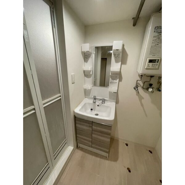 - 風呂(ユニットバス)、トイレ(水洗)、洗面台(独立)、浴室乾燥機、洗髪洗面化粧台、バス・トイレ別、洗濯機置場(室内)