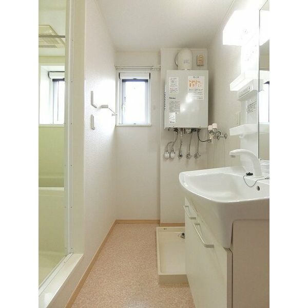 - 洗面台(独立)、浴室乾燥機、追い焚き、洗髪洗面化粧台、バス・トイレ別、洗濯機置場(室内)
