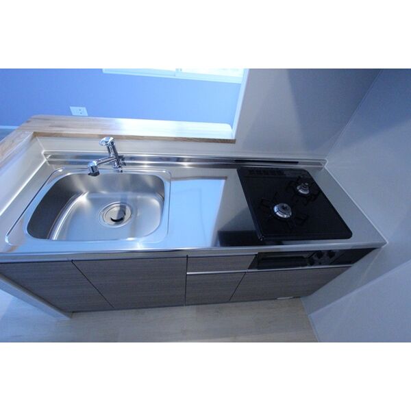 - 給湯器(プロパンガス)、ガステーブル(二個口)、システムキッチン、対面式キッチン