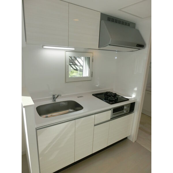 - 給湯器(都市ガス)、ガステーブル(二個口)、システムキッチン