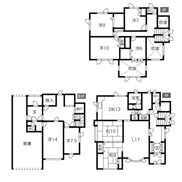 1F:L17.5xDK13x和10x和9 2F:10x8x7x6 B1F:14x7.5 - 階数