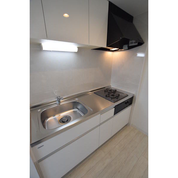 - 給湯器(都市ガス)、ガステーブル(二個口)、システムキッチン