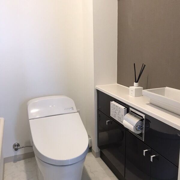 - 風呂(ユニットバス)、トイレ(水洗)、浴室乾燥機、暖房便座、シャワートイレ、追い焚き、洗髪洗面化粧台、バス・トイレ別、洗濯機置場(室内)、洗面台
