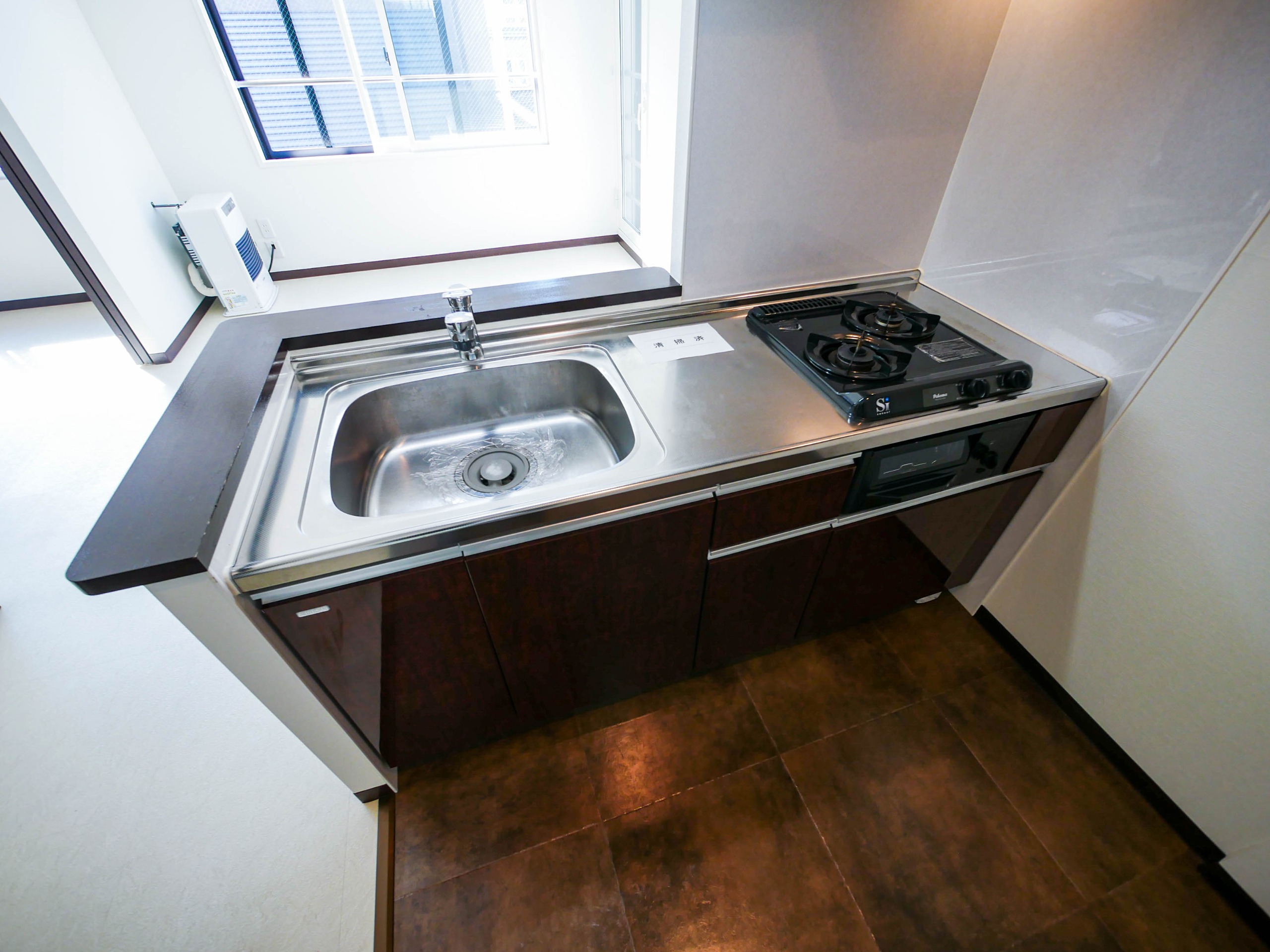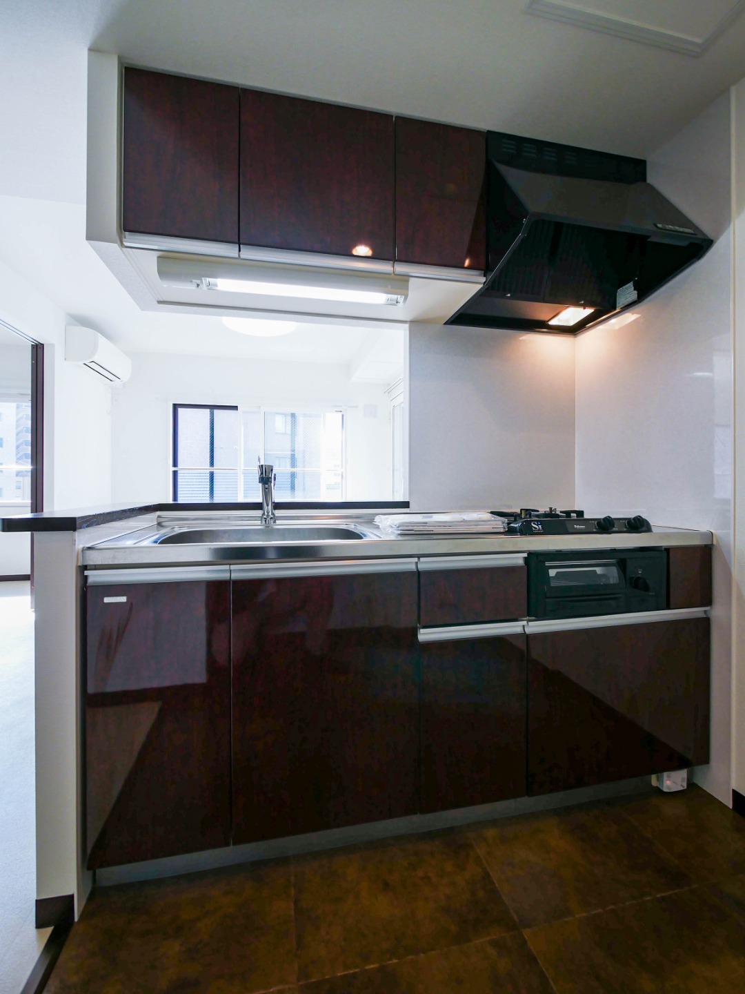 - 給湯器(プロパンガス)、ガステーブル(二個口)、システムキッチン、対面式キッチン