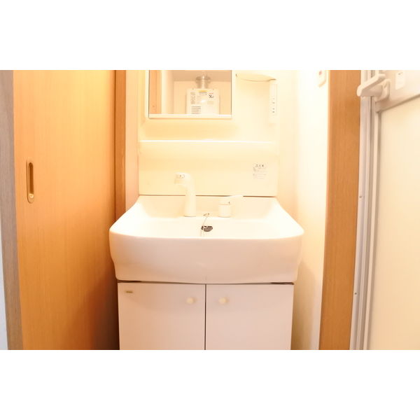 - 風呂(ユニットバス)、トイレ(水洗)、洗面台(独立)、暖房便座、シャワートイレ、洗髪洗面化粧台、バス・トイレ別、洗濯機置場(室内)