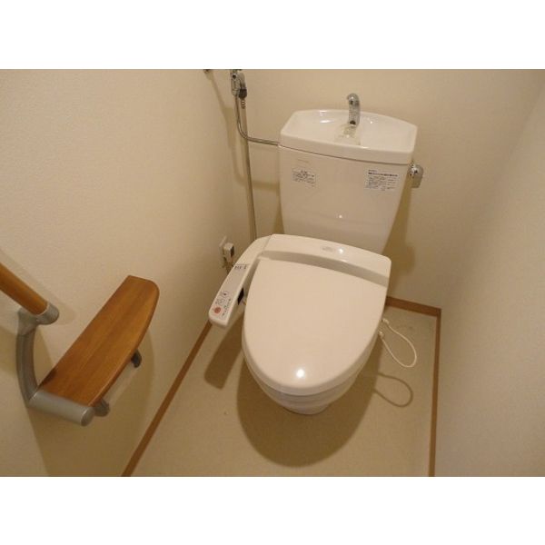 - 風呂(ユニットバス)、トイレ(水洗)、洗面台(独立)、浴室乾燥機、シャワートイレ、洗髪洗面化粧台、バス・トイレ別、洗濯機置場(室内)