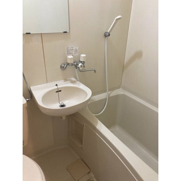 - 風呂(ユニットバス)、トイレ(水洗)、洗面台(浴室内)