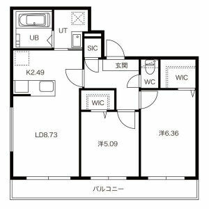 LD8.73 × K2.49 × 洋室5.09 × 洋室6.36 - 階数