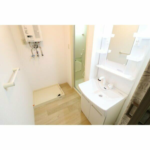 - 風呂(ユニットバス)、トイレ(水洗)、シャワートイレ、洗髪洗面化粧台、バス・トイレ別、洗濯機置場(室内)、洗面台(独立)