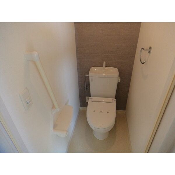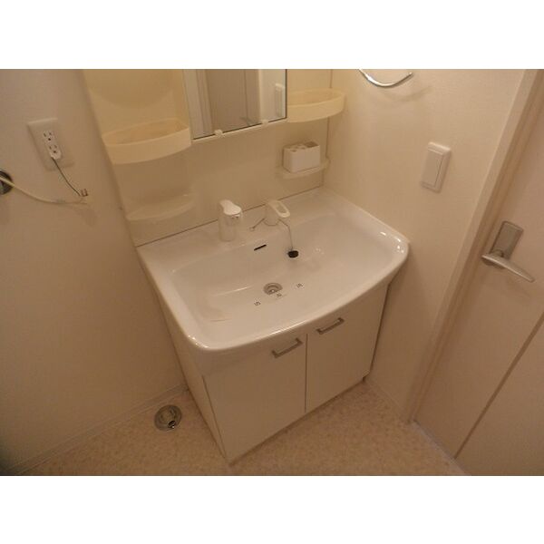 - 風呂(ユニットバス)、トイレ(水洗)、洗面台(独立)、暖房便座、洗髪洗面化粧台、バス・トイレ別、洗濯機置場(室内)
